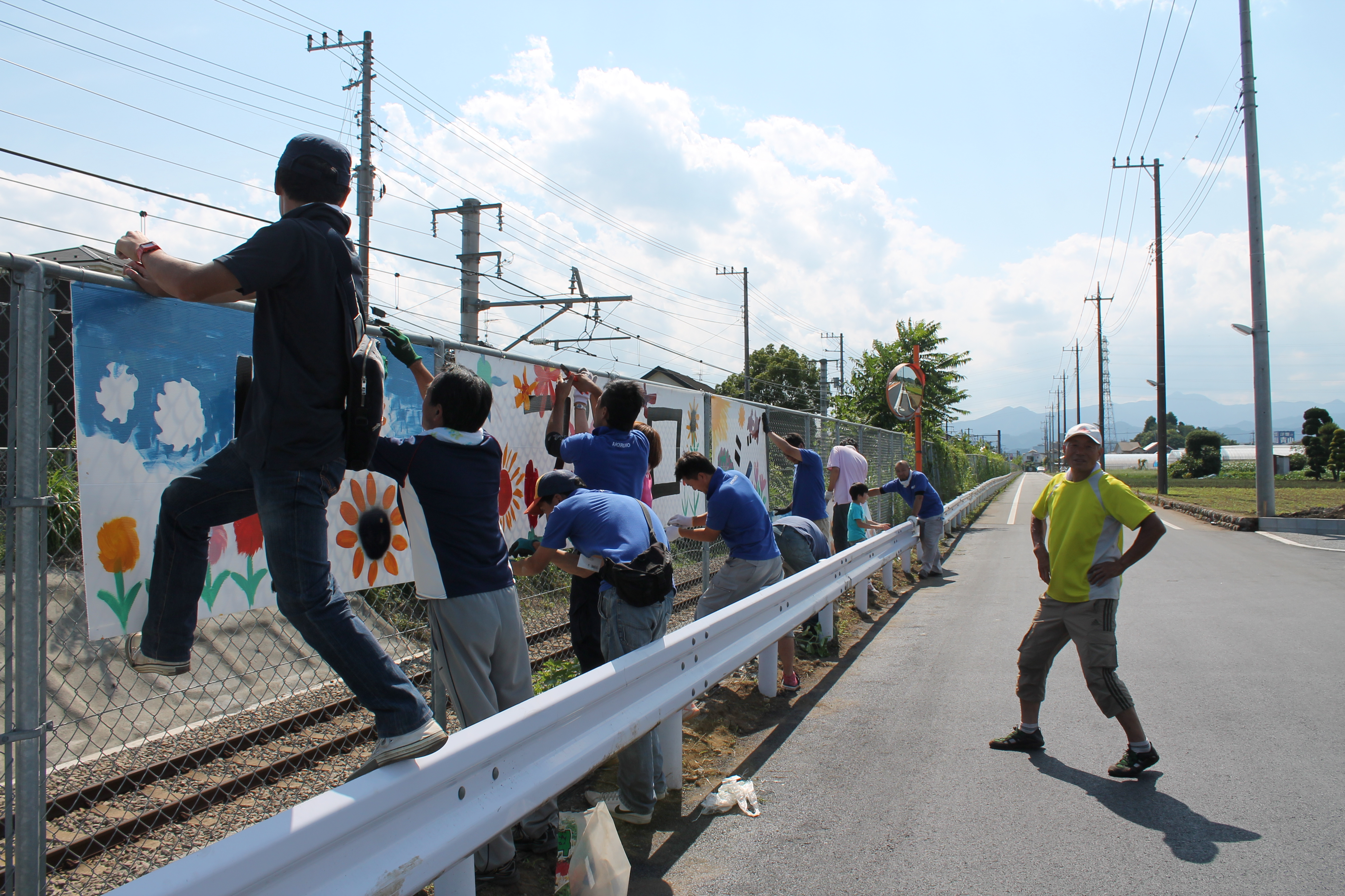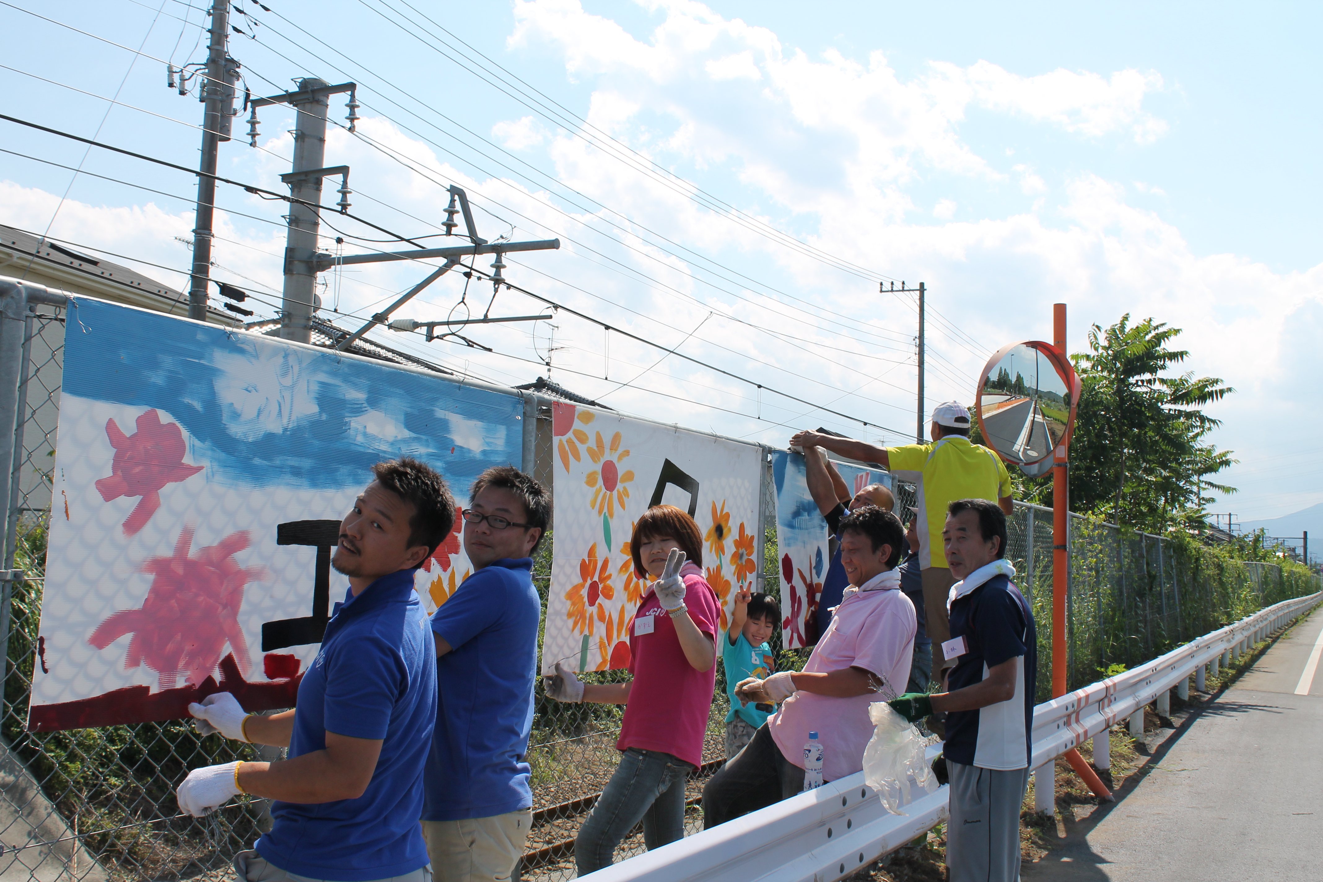 6月のひまわりプロジェクトは草むしりと、線路沿いの金網に