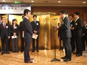 東京ブロック2012年度アカデミー研修委員会閉校式が、パレスホテル立川で開催され、本年度アカデミーに出向した桂田裕司君、橋本和枝君、小山司君、水谷卓矢君がすべての事業を終了し、卒業されました。