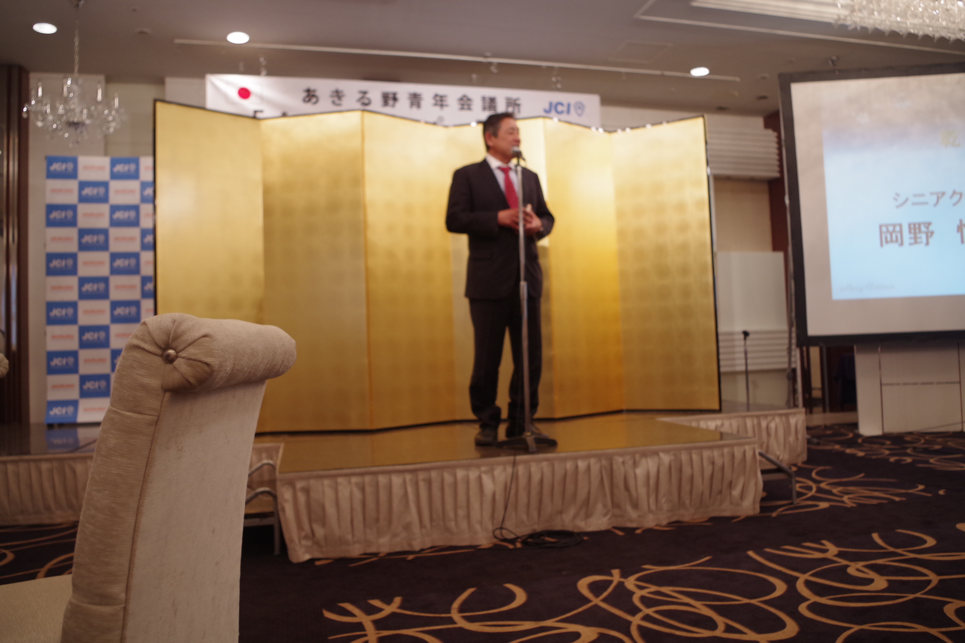 リースが受け継がれるセレモニーが行われ第20代あきる野青年会議所理事長としてのスピーチ