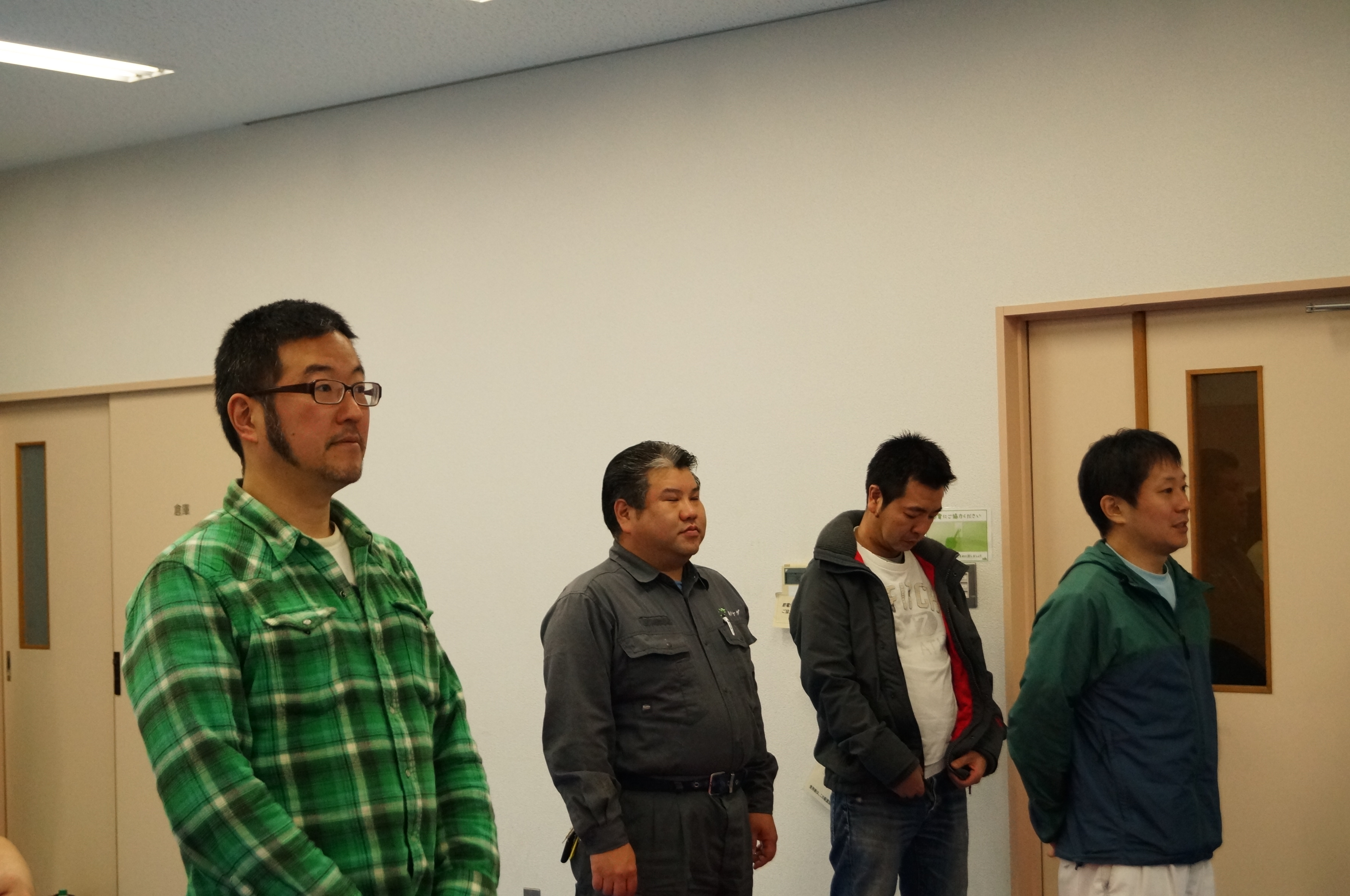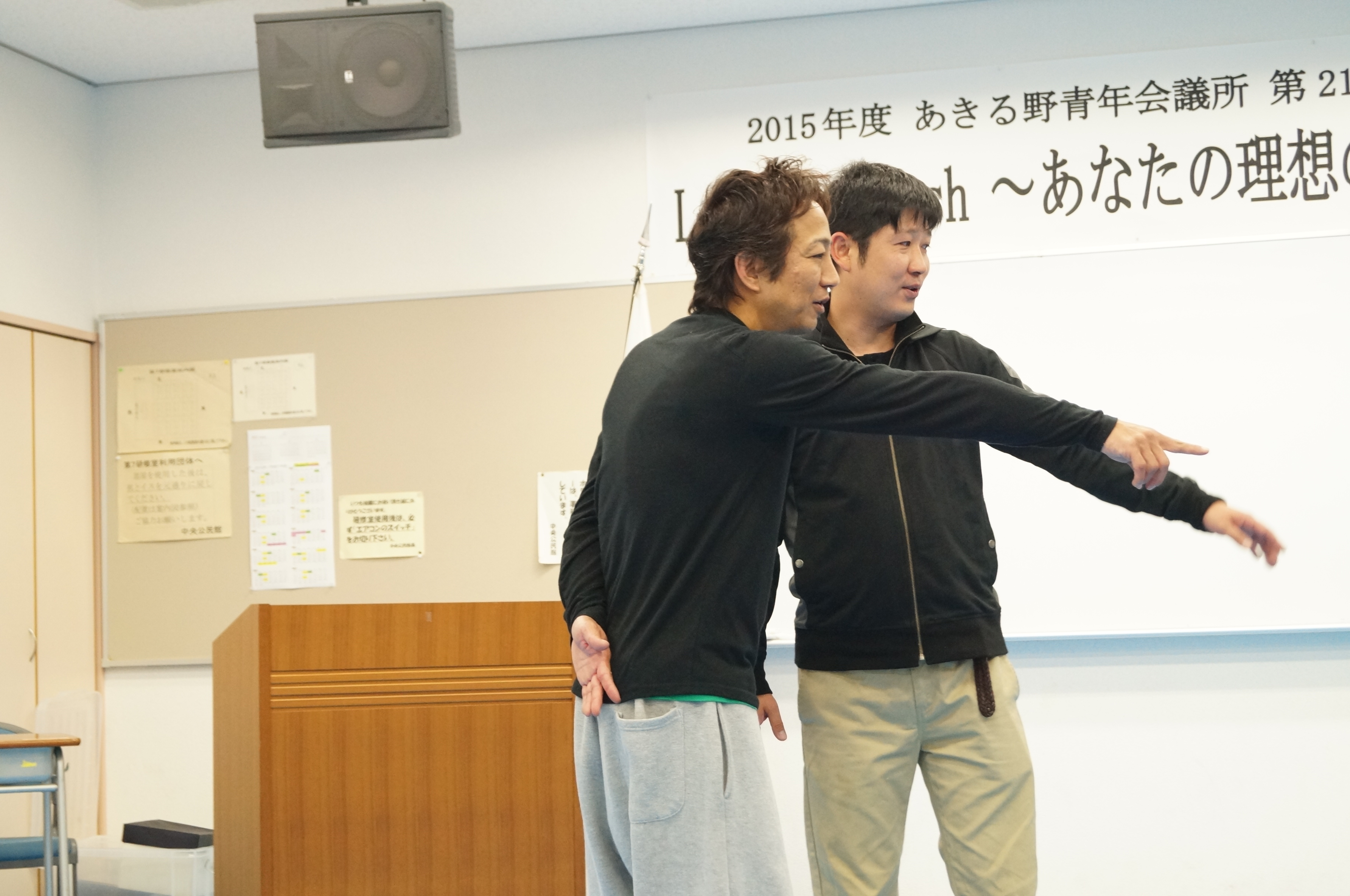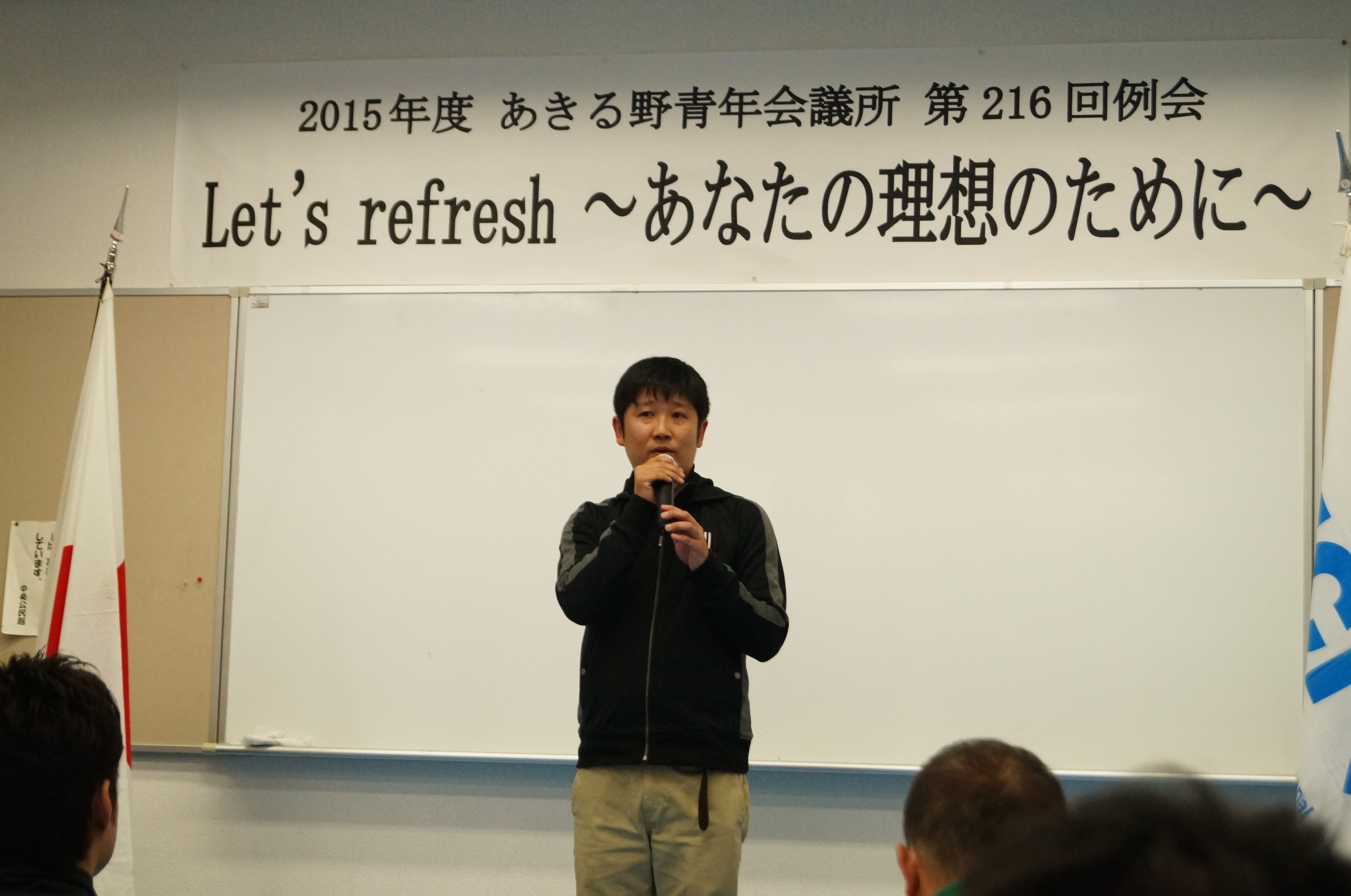 普段とは違って、机も椅子もとっぱらって、みなジャージを着ての例会でした。